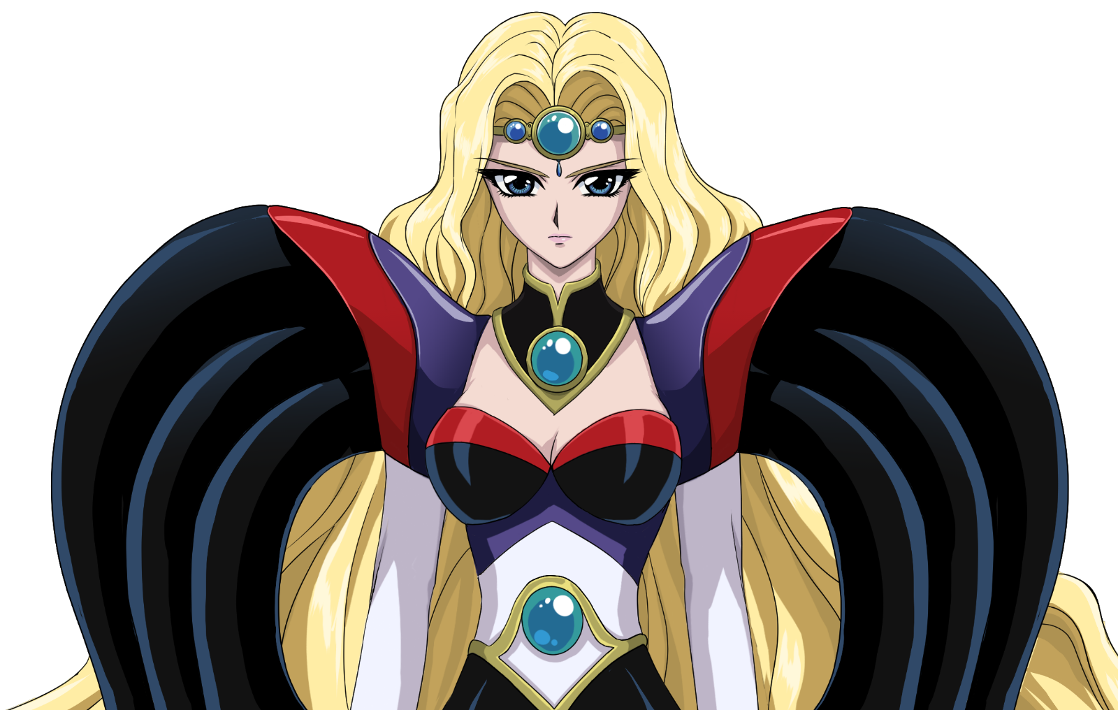 After the Magic Knights killed Zagato, Princess Emeraude went into a state of shock that eventually evolved into anger and pure hatred, causing a darker side of her to emerge. When the Magic Knights came to greet Emeraude after defeating Zagato, she attacked them almost immediately, summoning her own Rune God and relentlessly pursuing them. Upon spotting Zagato's fallen sword, she picked it up, caressed it lovingly, and claimed that she would use it to avenge his death. With neither sympathy nor mercy, she directly stabbed Hikaru/Rayearth in the shoulder, and even laughed cruelly upon seeing Hikaru in pain.